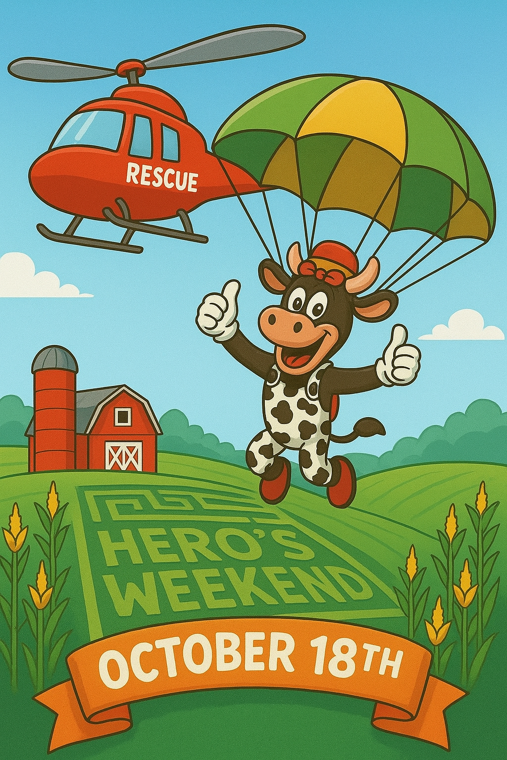 Meet & Greet Local Heroes from your community! Say thank you to the folks who make a difference every day. Conquer our famous corn maze, this year dedicated to the legendary "Stooby". Grab your family and friendsโlet's celebrate courage and community! We can't wait to see you!